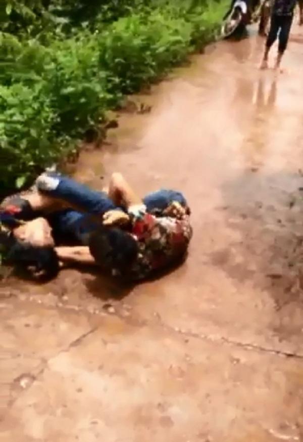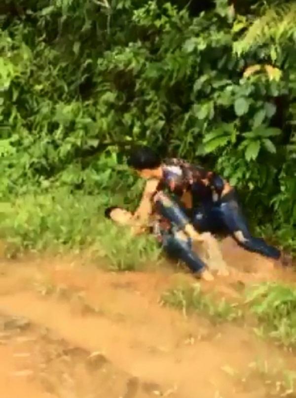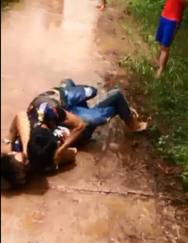 Theo đó, hai chàng trai nằm lăn ra đất vật lộn, đánh đấm lẫn nhau, bất chấp thời tiết mưa gió và đường bẩn trơn trượt. Thậm chí, khi cùng bị ngã xuống bụi cây ven đường, cả hai vẫn liên tục lao vào túm tóc, đạp vào đầu và mặt đối thủ. Đến khi được mọi người quanh đó kéo lên, hai nam thanh niên không chịu dừng lại mà tiếp tục đánh, đẩy nhau nằm xuống vũng nước bẩn.