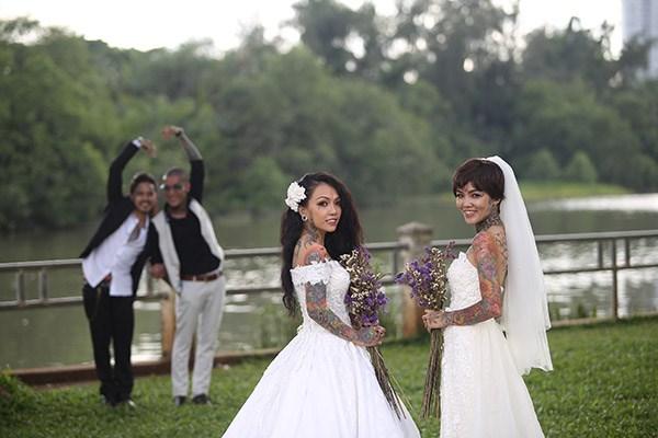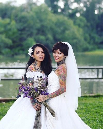 Mới đây, một bộ ảnh cưới của hai cô dâu với những hình xăm kín người đã khiến cho nhiều người thích thú. Theo đó, cả hai đều là hot girl trong giới xăm mình, Triệu Bo và Phạm Mai là những gương mặt được nhiều người biết tới.
