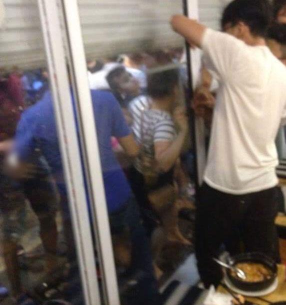 Quán mì cay phải đóng cửa cuốn bên ngoài để can ngăn sự việc. Nguồn: beatvn