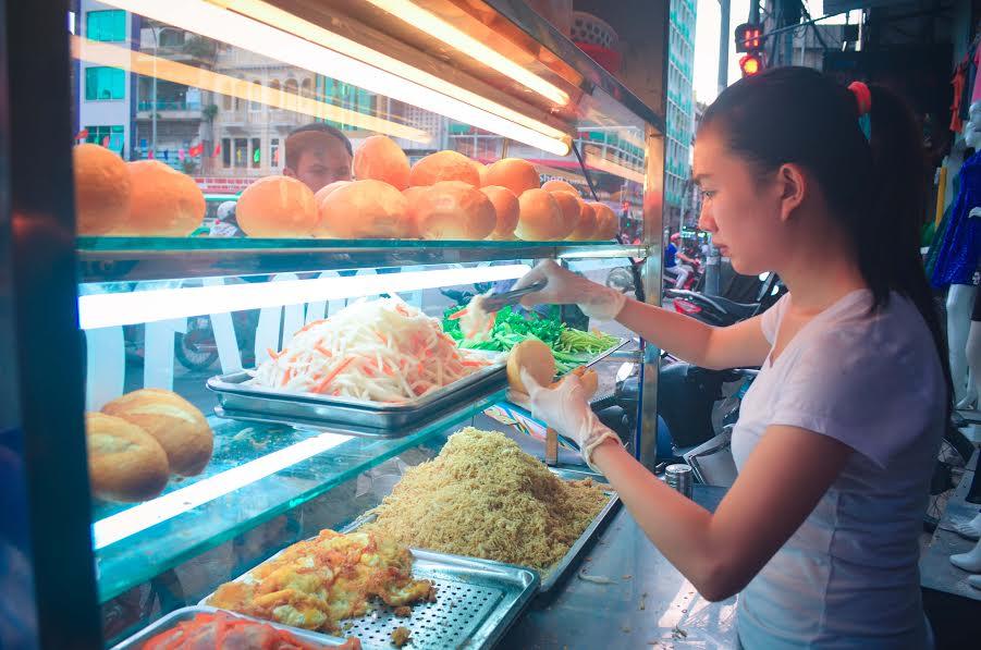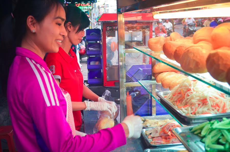 Bánh mì bán với giá 5.000 đồng/ổ duy nhất giữa Sài Gòn do chị Ánh Hồng và Thúy An mở đã 6 năm qua.