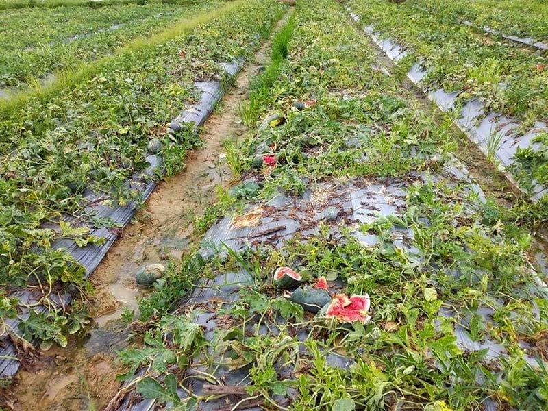 Qua tìm hiểu, ruộng dưa bị kẻ xấu trộm nhiều quả chín đến kỳ thu hoạch, đồng thời đập nát những quả dưa non.