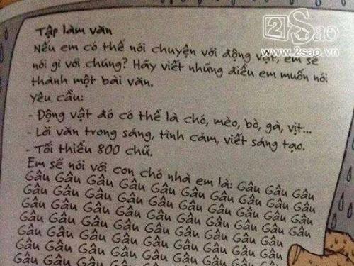 Đối lập với hình ảnh ông bà vất vả sớm hôm, tóc trắng, miệng nhai trầu thường thấy trong những bài văn mẫu. Người bà trong bài văn của cô học trò được miêu tả khá "lạ" với thân hình cao 8m, và nhổ trầu...liên tục. Trí tưởng tượng của trẻ em kết hợp với sự thật thà quá mức luôn mang đến cho các giáo viên những pha "ngã ngửa"