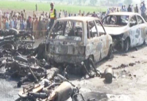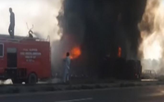 Năm 2015 tại Pakistan một chiếc xe bồn va chạm với xe bus và bốc cháy khiến hàng chục người trên xe bus bị thiêu sống. Ảnh: twitter.