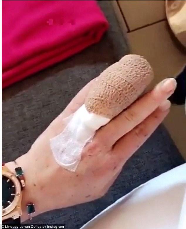 Cận cảnh ngón tay được băng bó sau khi đứt lìa của Lindsay Lohan.