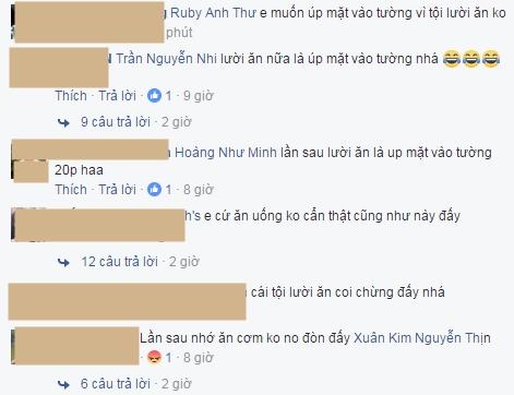 Sau khi chồng tra hỏi ăn bao nhiêu bát cơm và vì sao sưng mặt, cô vợ cho biết ăn một bát bởi khi ấy không có gì để ăn. Nhưng "thành tích" chỉ ăn 1 bát cơm của vợ đã khiến cho anh chồng cảm thấy lo lắng và kết nó thành một tội. Khi cô gái uốn éo, túm váy, nũng nịu đòi đi mua sữa thì anh chàng cũng bắt vợ trả lời xong rồi mới đi. Theo chia sẻ, đây là lần thứ 5 cô gái này bị anh chồng bắt úp mặt vào tường vì tội lười ăn và tha cho 5 lần khác. Kết thúc màn tra hỏi, cô vợ hứa sẽ không tái phạm.