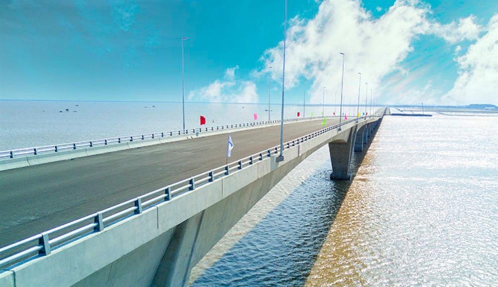 Cầu Tân Vũ Lạch Huyện được khánh thành năm 2017 đang là cầu vượt biển dài nhất Việt Nam. Ảnh: Trọng Tùng
