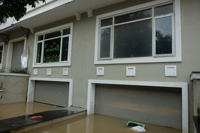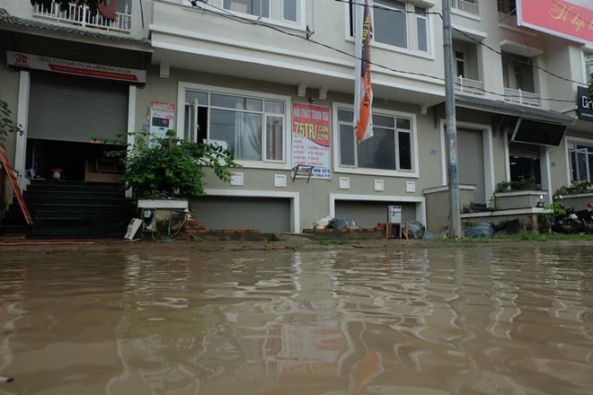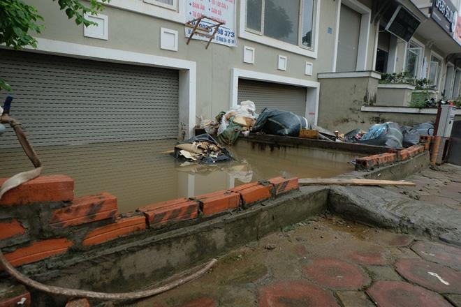 Dù Hà Nội đã ngớt mưa lớn sau khi chịu ảnh hưởng của cơn bão số 2 nhưng nhiều căn biệt thự liền kề trên đường Lê Trọng Tấn, khu đô thị Nam An Khánh, huyện Hoài Đức, Hà Nội nước vẫn lênh láng.