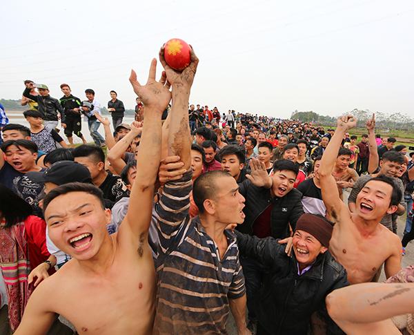 Một số thanh niên vui mừng khi cướp được quả phết.