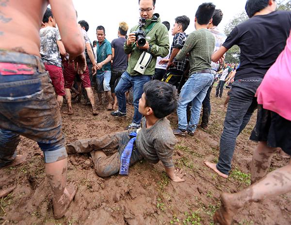 Một thanh niên bị xô ngã lại lễ hội cướp phết.