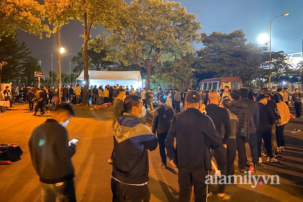 Nhiều CĐV làm xét nghiệm tại sân phàn nàn khi phải chờ lâu, xếp hàng từ 4h chiều vẫn chưa được vào.