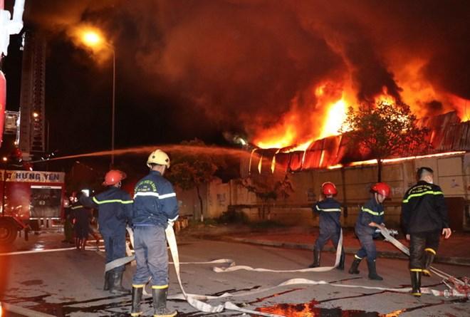Đám cháy bùng phát lúc 20h10 ngày 25/7 từ một nhà máy nhựa sau đó lan sang khu vực chợ gạo phường An Tảo (TP Hưng Yên, tỉnh Hưng Yên).
