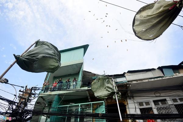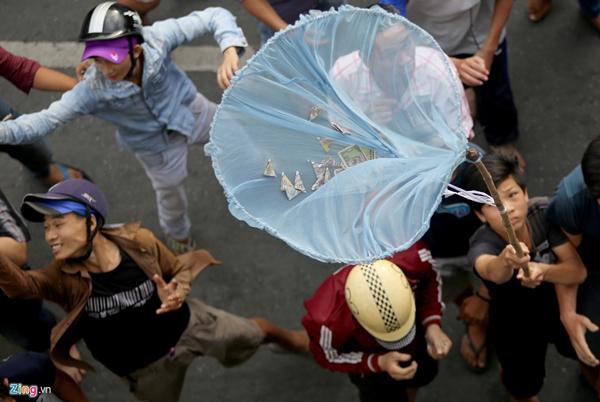 Bên dưới hàng chục người chuẩn bị sẵn những chiếc vợt, lồng để hứng tiền.