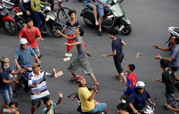 Hàng trăm người tranh nhau 20 triệu tiền lẻ rơi xuống đường: Khi tiền lẻ cúng cô hồn được ném xuống, hàng trăm người cầm sẵn vợt hứng và lao vào giành giật làm náo loạn cả khu phố Trần Hưng Đạo (TP HCM) chiều 17/8.