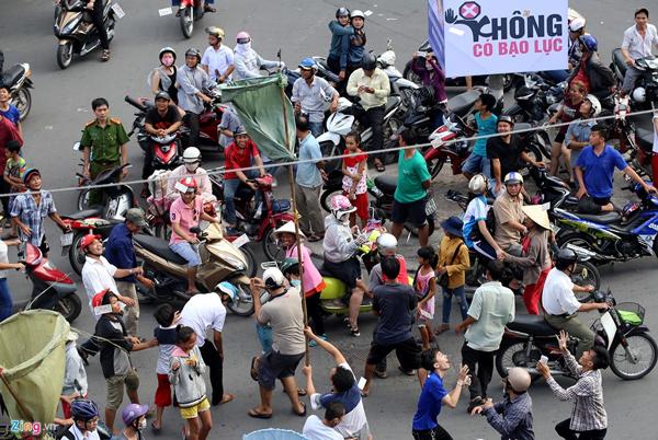 Không thể tránh khỏi cảnh xô đẩy ngã lăn quay ra đường.