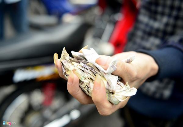 Từng nhóm người ngồi lại đếm, tháo những tờ tiền 2.000 đồng gia chủ gấp lại.