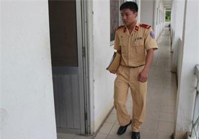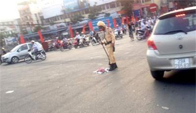 Người CSGT trong bức ảnh là Trung sĩ Nguyễn Xuân Minh (21 tuổi), vừa ra trường và nhận công tác tại Đội CSGT công an Q.11 hơn 6 tháng.