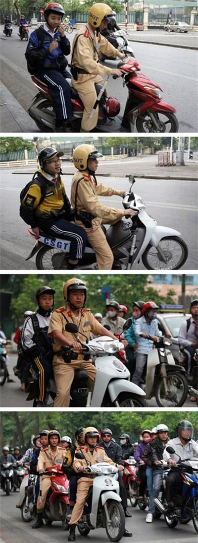 Một số trường hợp bị xử phạt có thể dẫn đến việc các em tới lớp muộn giờ được các chiến sĩ CSGT dùng xe máy chở tới trường, còn phụ huynh ở lại để ký biên bản.