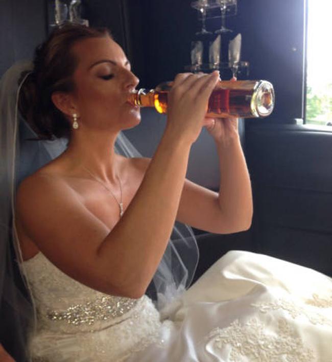 Chắc lần đầu cưới run quá đây mà, uống một ngụm lấy động lực.