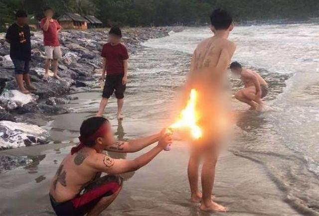 Dù không rõ những bạn trẻ kia học ở ngôi trường cụ thể nào nhưng theo trang báo điện tử WangYi, từ hình ảnh cắt ra từ đoạn clip, có thể thấy rất rõ một nữ sinh mặc quần bò ngắn màu trắng đang giơ chân cho hai nam sinh đứng ở hai bên… liếm.