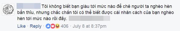 "Tôi không biết bạn giàu tới mức nào để chê người ta nghèo hèn bẩn thỉu, nhưng chắc chắn tôi có thể biết được cái nhân cách của bạn nghèo hèn tới mức nào rồi đấy".