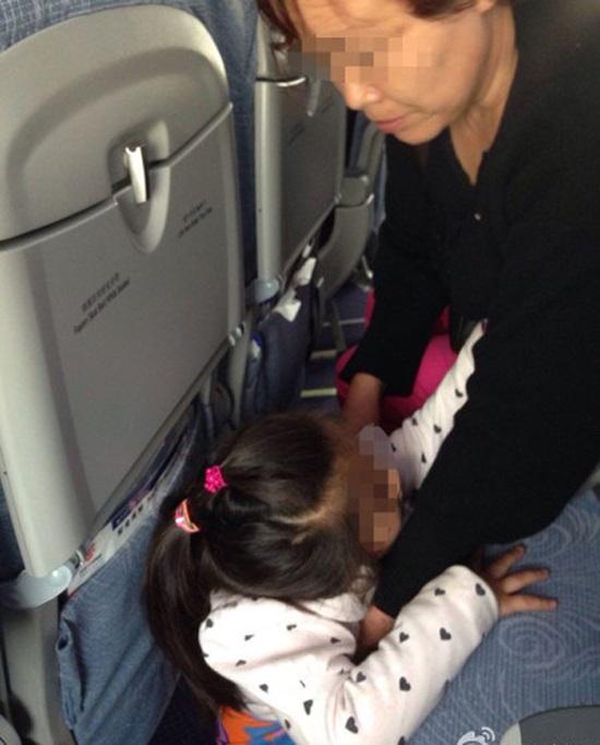Do ngại đưa con nhà vệ sinh, người mẹ của bé đã cho con đi vệ sinh vào túi nilong, nhưng do đứa trẻ cựa quậy nên nước tiểu văng hết xuống sàn... làm cho những hành khách ngồi gần vô cùng khó chịu.