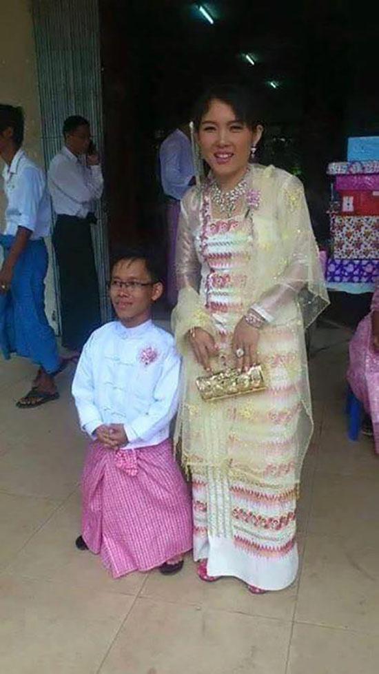 Người vợ bé nhỏ và chồng hạnh phúc trong ngày cưới.