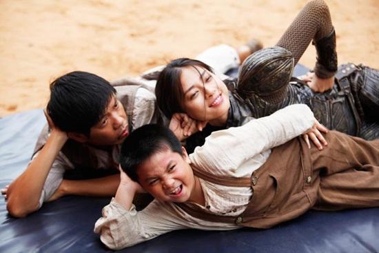 Ngô Thanh Vân hạnh phúc bên “chồng” Thái Hòa và “con trai”.