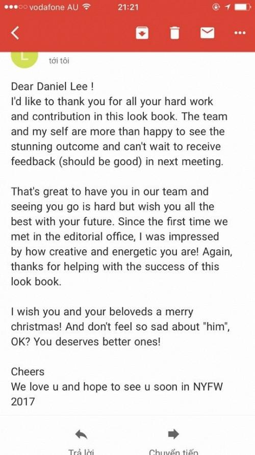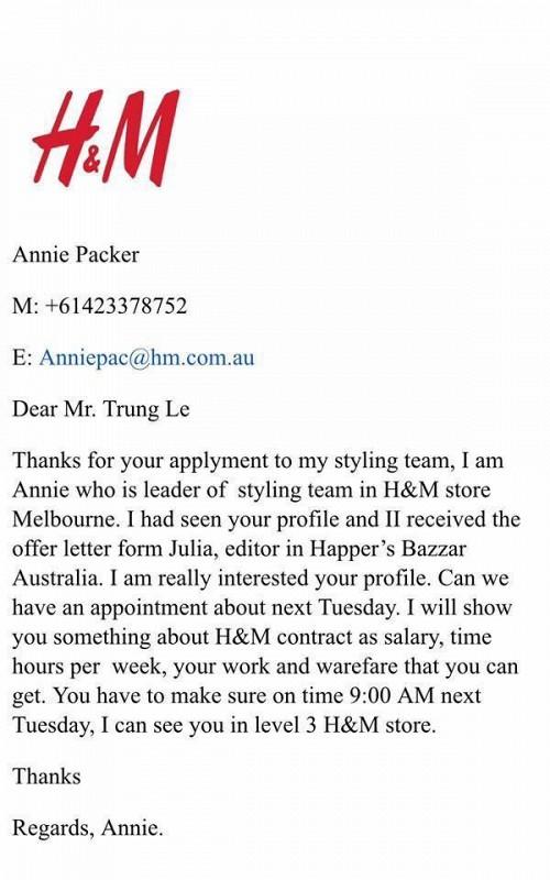 Thư xác nhận của H&M cho vị trí stylist của Lê Bảo Trung.