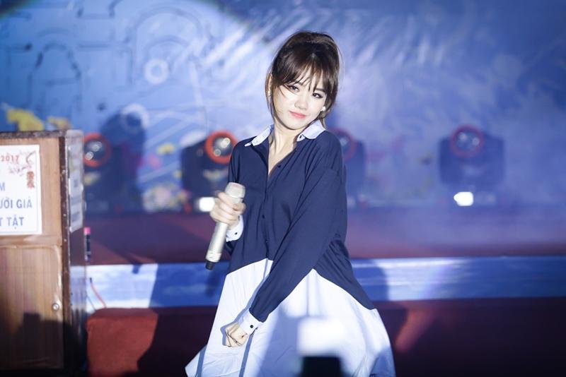Xuất hiện với chiếc váy suông trẻ trung, vợ mới cưới của Trấn Thành hát và nhảy cực sung trên sân khấu. Cô biểu diễn hai bản hit quen thuộc Hương Đêm Bay Xa và Anh Cứ Đi Đi theo phong cách mới, trong tiếng cổ vũ nồng nhiệt cũng như hát theo nhiệt tình từ người xem phía dưới. Sau hậu trường, người đẹp Hàn Quốc còn nhận được tình cảm khán giả nhí. Hari Won vẫn luôn tươi cười khi được người hâm mộ xin chụp hình và chữ ký. Cô dùng toàn bộ tiền cát sê để quyên góp.