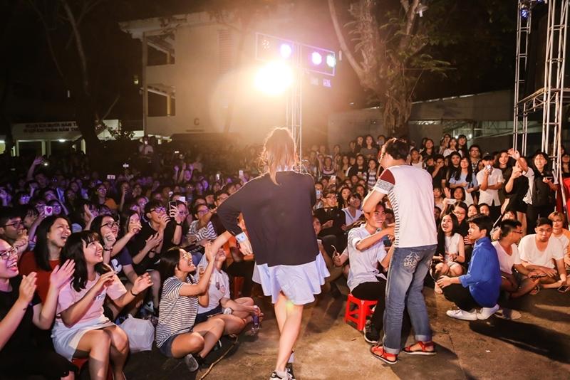Mỹ nhân xứ kim chi chia sẻ rằng, sẽ luôn có mặt để góp công sức trong các chương trình từ thiện ở bất cứ đâu. Có thể nói, từ sau khi kết hôn, Hari Won còn hăng say chạy show hơn trước. Sau khi kết thúc chương trình, Hari tiếp tục di chuyển đến một địa điểm khác biểu diễn trong chương trình gây quỹ cho các sinh viên.