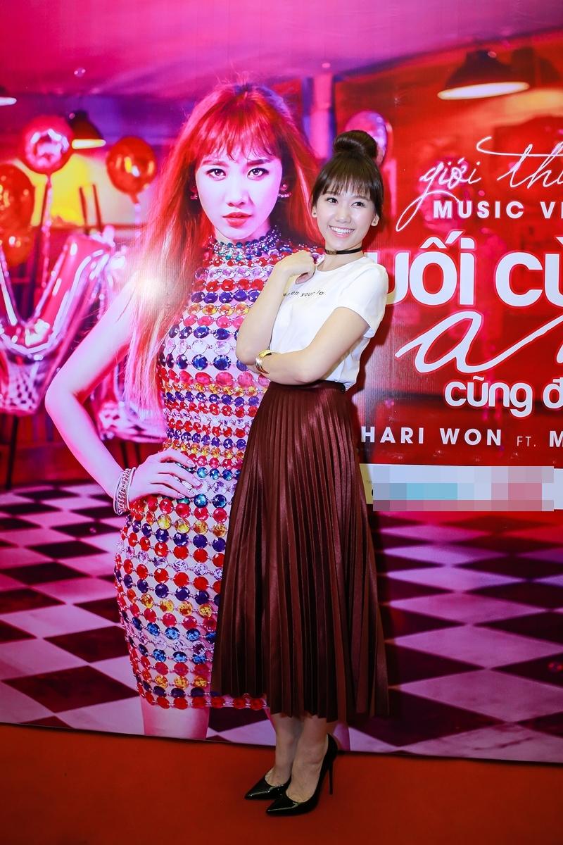 Chiều 19/4, Hari Won đã có buổi gặp gỡ báo chí ra mắt MV mới của mình. Trong buổi họp báo này không có sự xuất hiện của Trấn Thành vì anh vướng lịch trình tại Hàn Quốc.