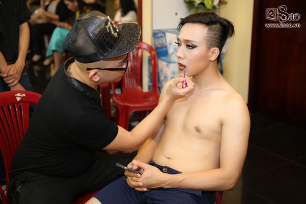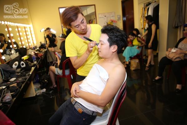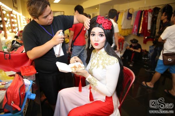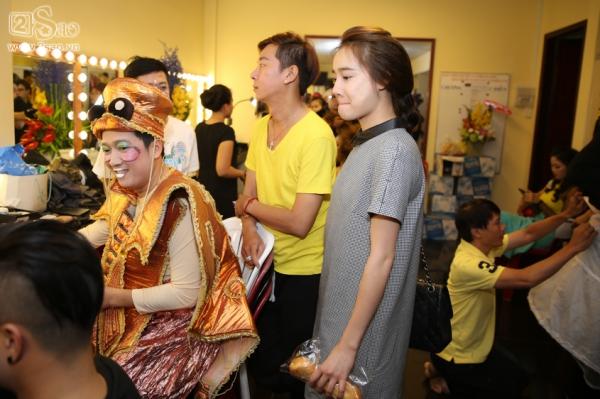 Nữ ca sĩ thay vì ra ngoài ngồi xem thì đã lui vào hậu trường để phụ người yêu.