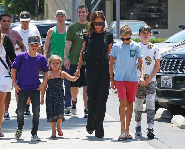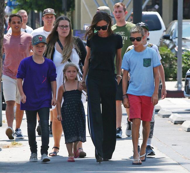 Vừa qua, Victoria Beckham đã được bắt gặp đưa bốn con yêu - Brooklyn, Romeo, Cruz và Harper - đi dạo phố sau khi dùng bữa ở Los Angeles. Đây là dịp hiếm có khi cả bốn cô cậu nhà Beckham đều có mặt đông đủ, vì thế cánh săn ảnh đã không bỏ lỡ khoảnh khắc này.