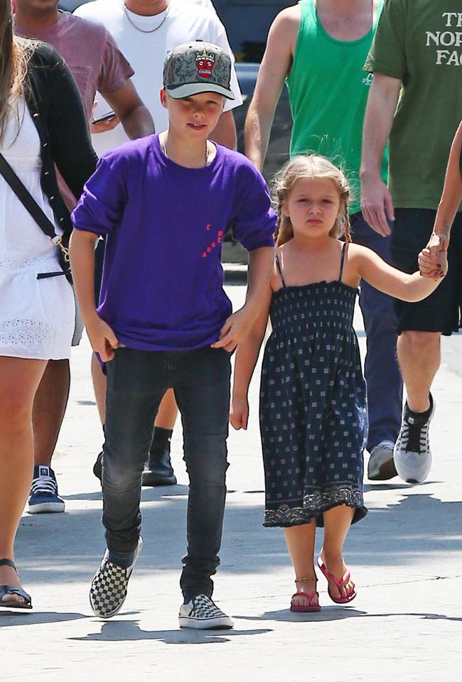 Trong những bức ảnh mới, cô bé Harper diện đầm hai dây, tết tóc vô cùng xinh xắn. Cô bé 5 tuổi giờ đây đã điệu đà, ra dáng thiếu nữ hơn. Trong khi đó, Romeo và Cruz thì ngày càng cao lớn, đặc biệt là Cruz trông rất điển trai và giống bố.