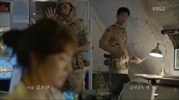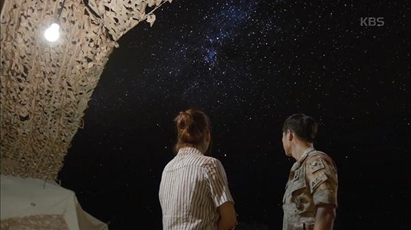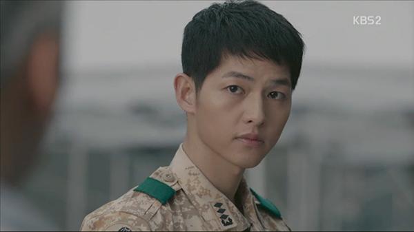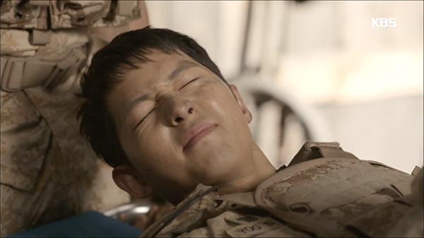 Sau tập 7 đầy u ám khiến tỉ suất người xem giảm nhẹ, tập 8 bộ phim "Hậu duệ mặt trời" đã mang màu sắc vui tươi và thoải mái hơn. Bắt đầu tập 8 là khi Mo Yeon chăm sóc cho vết thương của Shi Jin, người đẹp đã vô cùng lo lắng và mệt mỏi khi phải trải qua một ngày dài căng thẳng và sợ hãi.