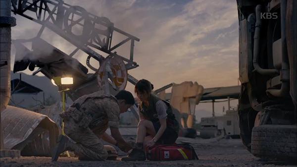 Ở tập 5 bộ phim "Hậu duệ của mặt trời", khán giả đã mê mẩn những tình huống ngọt ngào và hài hước giữa Shi Jin và Mo Yeon, thì ở tập 6 là một chuỗi đau thương ập tới, không chỉ Shi Jin và Mo Yeon phải chia ly, mà còn là hình ảnh một Uruk thanh bình bị nhấn chìm bởi động đất.