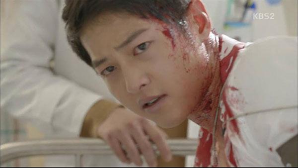 Tập 13 bộ phim "Hậu duệ của mặt trời" đã kết thúc vô cùng kịch tính với phân cảnh Đại Úy Yoo Shi Jin bị bắn trọng thương, tình trạng nguy kịch. Tiếp nối sự gay cấn của tập trước, mở đầu tập 14 là hình ảnh bác sĩ Kang Mo Yeon vô cùng khẩn trương nhằm cứu người yêu vượt qua khỏi nguy hiểm. Tuy nhiên quân nhân phía Bắc Hàn đã uy hiếp bệnh viện, khiến Đại Úy Yoo Shi Jin nhịn đau để giải cứu cho con tin.