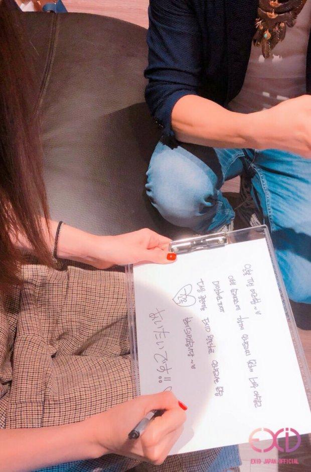 Tuy nhiên, đến hôm nay thì người hâm mộ đã có thể hoàn toàn yên tâm với hành động trấn an này của Solji. Trong hình là bức thư tay của Solji gửi các fan Nhật Bản, cô nàng viết: “Thật sự xin lỗi vì mình không thể đến dự showcase nhưng chắc chắn lần sau, mọi người sẽ được thấy EXID với đầy đủ thành viên nhé!“.