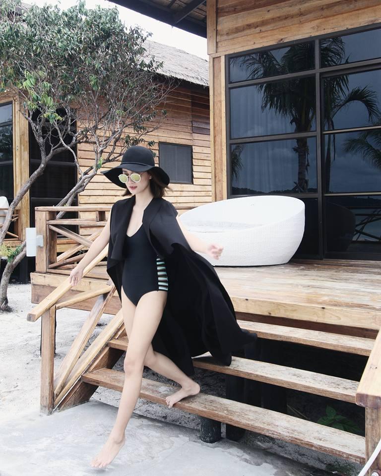 Cô nàng khoe vóc dáng thon gọn, gợi cảm cùng đôi chân dài thẳng tắp trong một lần đi biển.