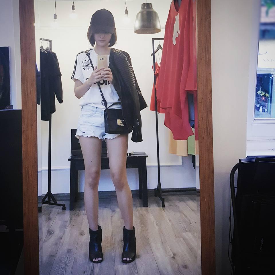 Street style của Quỳnh Chi gây ấn tượng với những set đồ đơn giản, phong cách như áo phông, áo hai dây, quần short, quần jeans rách, váy ngắn... kết hợp cùng boots cổ ngắn, giày slip - on.