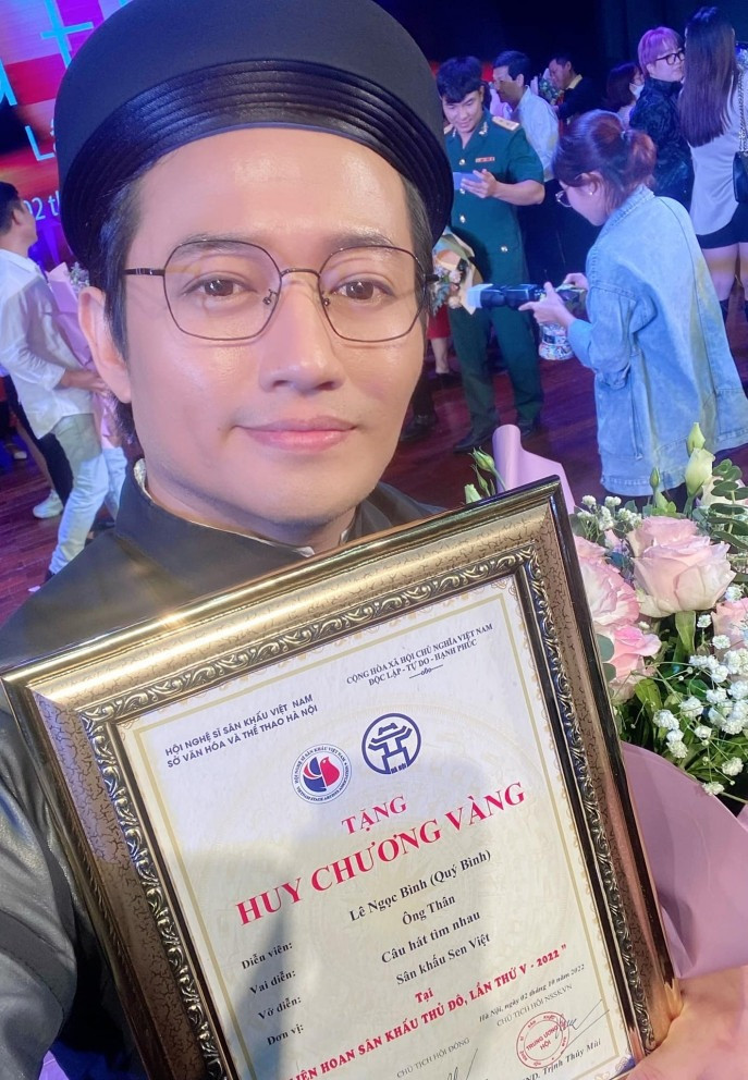 Trước đó, vào cuối năm 2022 là lần hiếm hoi Quý Bình xuất hiện tại một sự kiện giải trí là khi ra Hà Nội nhận Huy chương Vàng tại Liên hoan Sân khấu Thủ đô lần thứ V. Khi ấy, anh thể hiện rõ niềm hạnh phúc, cầm trên tay giải thưởng và dành tặng món quà ý nghĩa cho vợ và con trai.