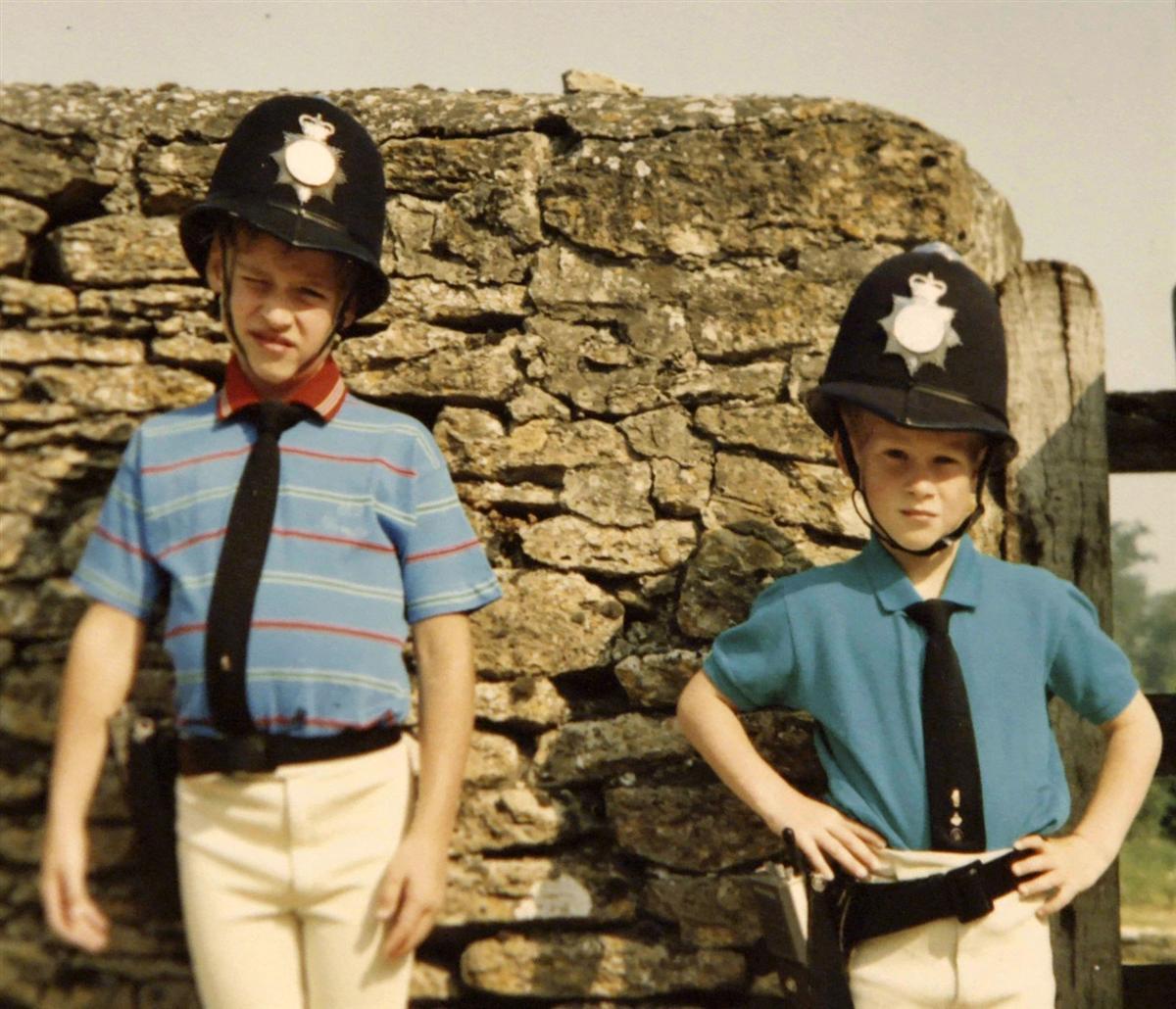 Hoàng tử William (bên trái) và Harry (bên phải) cực đáng yêu trong bộ đồ cảnh sát