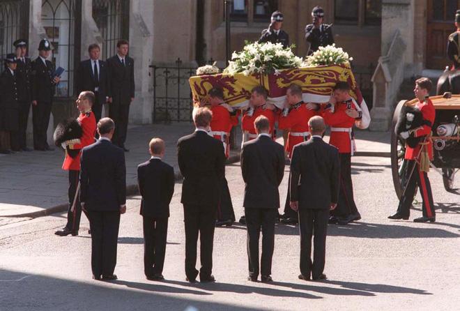 Thi thể của Công nương Diana được đặt trong một quan tài bằng đá và được tiễn đưa bởi hơn 2 triệu người đứng bên đường phố.