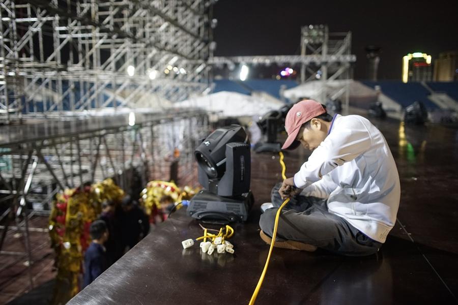 Thời tiết mưa rét gây khá nhiều trở ngại cho việc dàn dựng, nhưng ê kíp của đạo diễn Việt Tú đã nỗ lực để hoàn thiện sân khấu đặc biệt này.