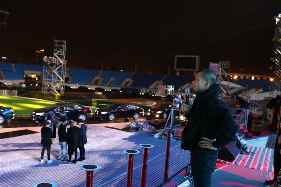 Đạo diễn Việt Tú chỉ đạo dàn xe tiến lên sân khấu.