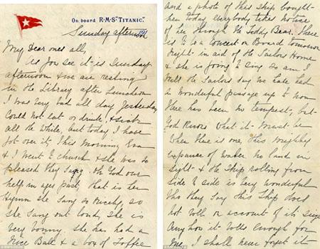Một đoạn trong bức thư bà Hart viết vài giờ trước khi con tàu Titanic chìm (Ảnh: Internet)