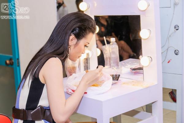 HLV Thu Minh tới địa điểm ghi hình từ khá sớm để luyện thanh nhạc cho các học trò.