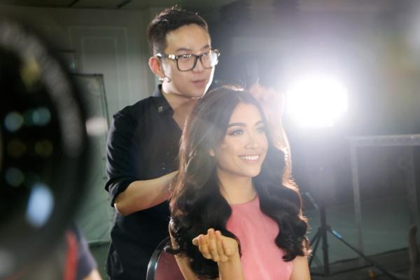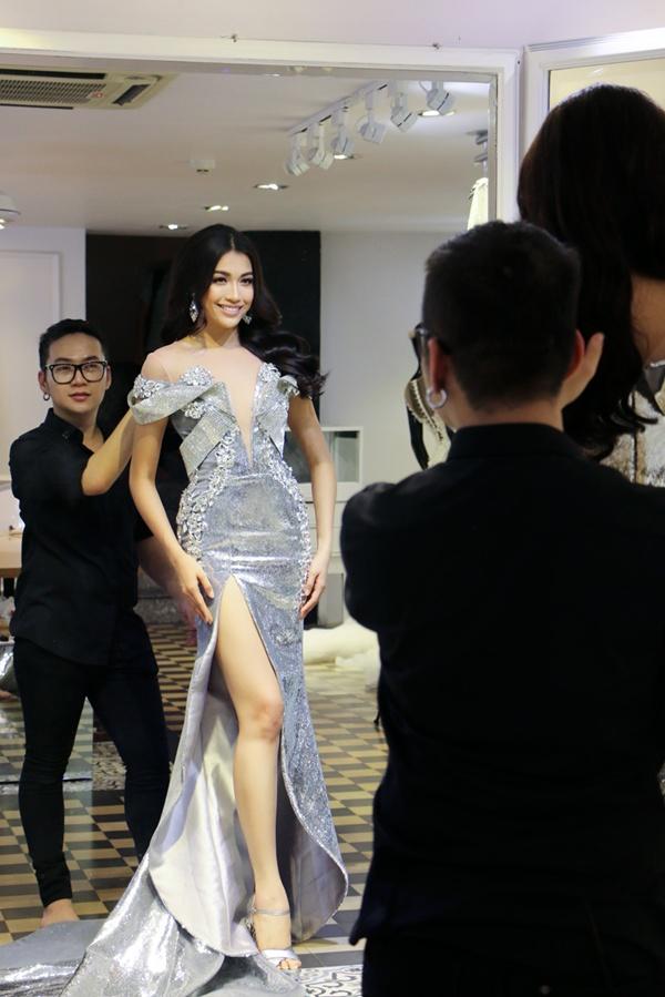 Hình ảnh hậu trường chụp trang phục dạ hội của Lệ Hằng.