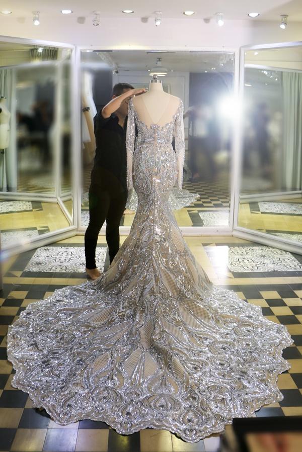 Còn đây là mẫu váy dạ hội thứ 2, dạng đuôi cá lấp lánh mà Chung Thanh Phong dành cho Lệ Hằng.