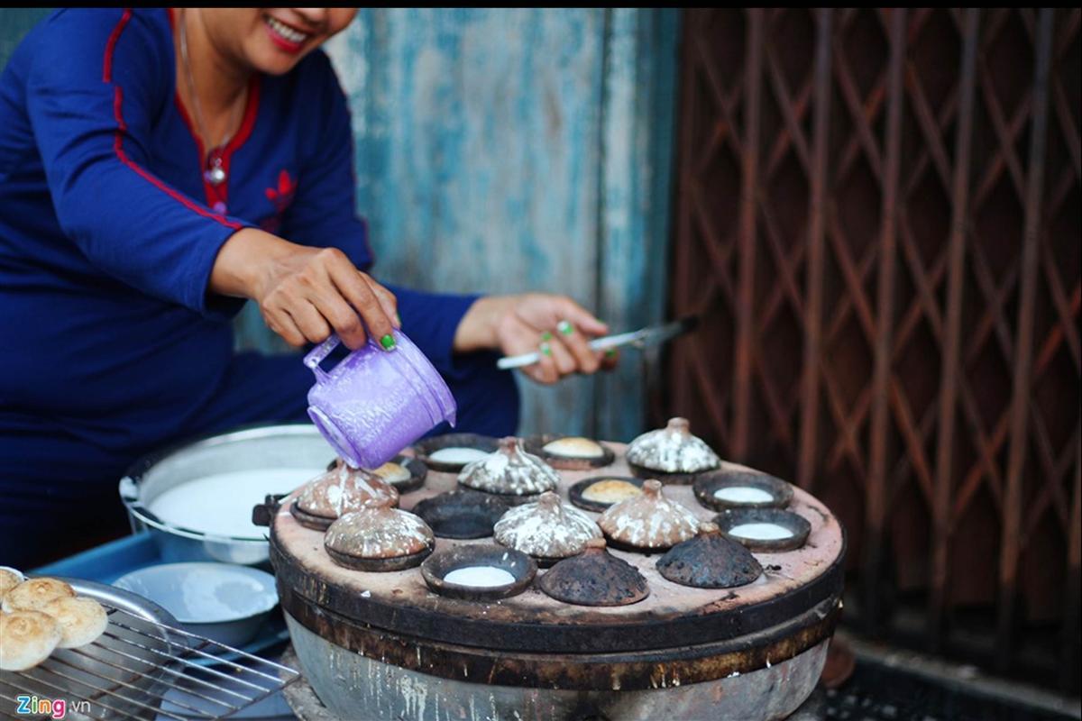Bánh xèo Nha Trang được đổ trong những chiếc khuôn nhỏ nằm gọn trong lòng bàn tay. Một chục bánh